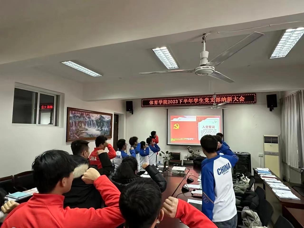 会上,全体起立,面向党旗奏唱《国际歌》、《中华人民共和国国歌》,在庄严肃穆的歌声中,纳新大会拉开帷幕。