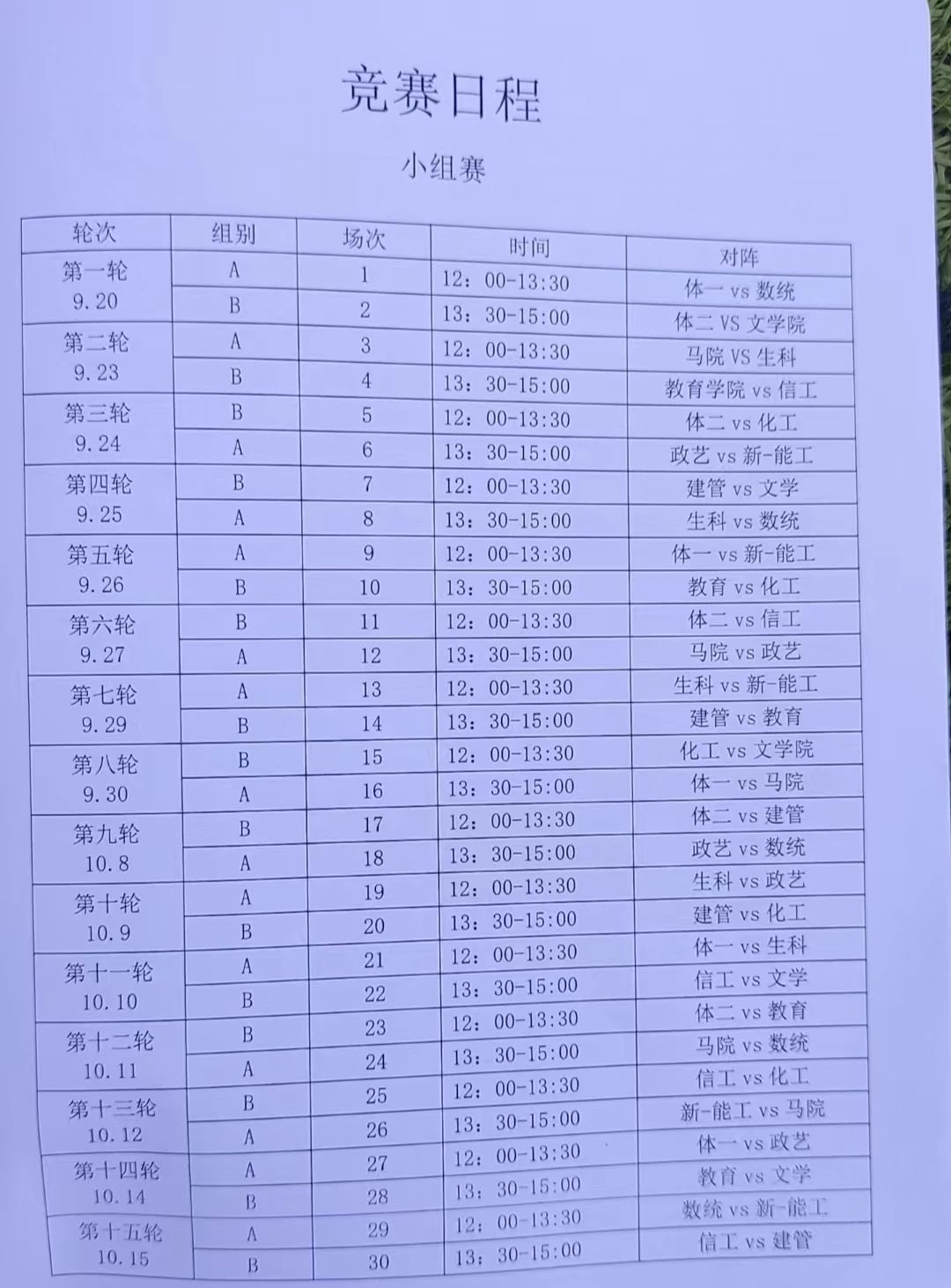 赛程