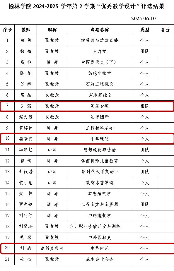公司在2024-2025学年第二学期优秀教学设计评选中4位教师获奖