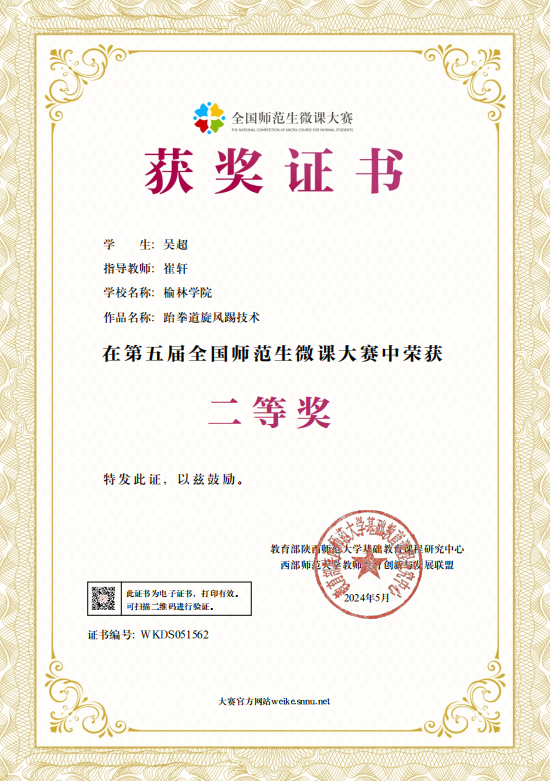 近日,第五届全国师范生微课大赛决赛评审结果公布,best365体育教育专业员工吴超在崔轩老师的悉心指导下,凭借扎实的专业基础和突出的创新能力,出色的教学设计和精湛的微课制作技巧,荣获了大赛二等奖的殊荣。