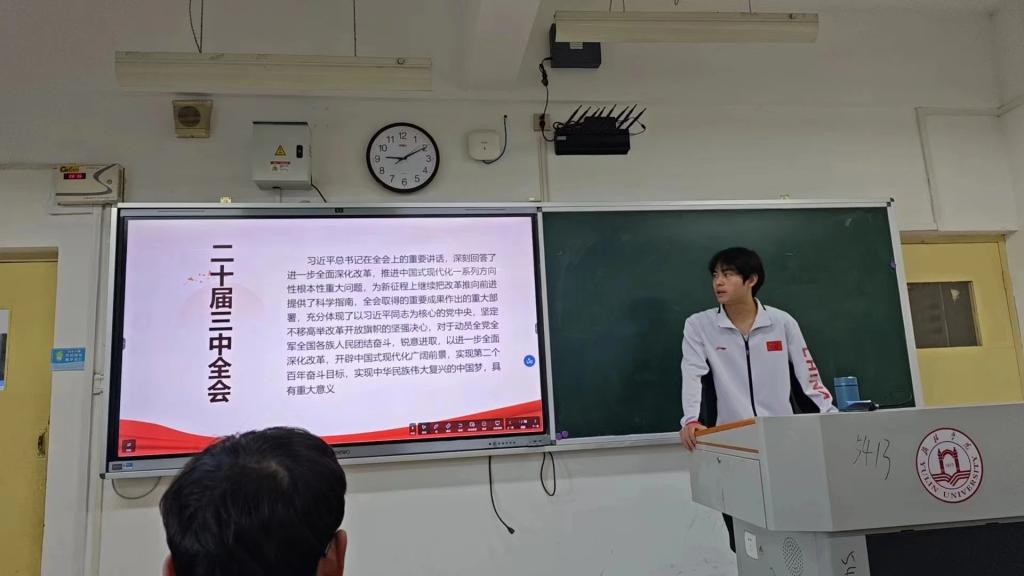 党的二十大召开以来,学习宣传贯彻党的二十大精神成为当前和今后一个时期全党全国的重大政治任务。党的二十大报告中深情寄语广大青年:“让青春在全面建设社会主义现代化国家的火热实践中绽放绚丽之花。”作为新时代的青年,理应勇挑重担、冲锋在前。当代中国青年生逢其时,施展才干的舞台无比广阔,实现梦想的前景无比光明。2024年10月11日,best365组织召开《学二十大精神,做新时代青年》专题学习活动,由23级体教一班管鑫鑫领学,24级体教一班、四班全体员工参加。