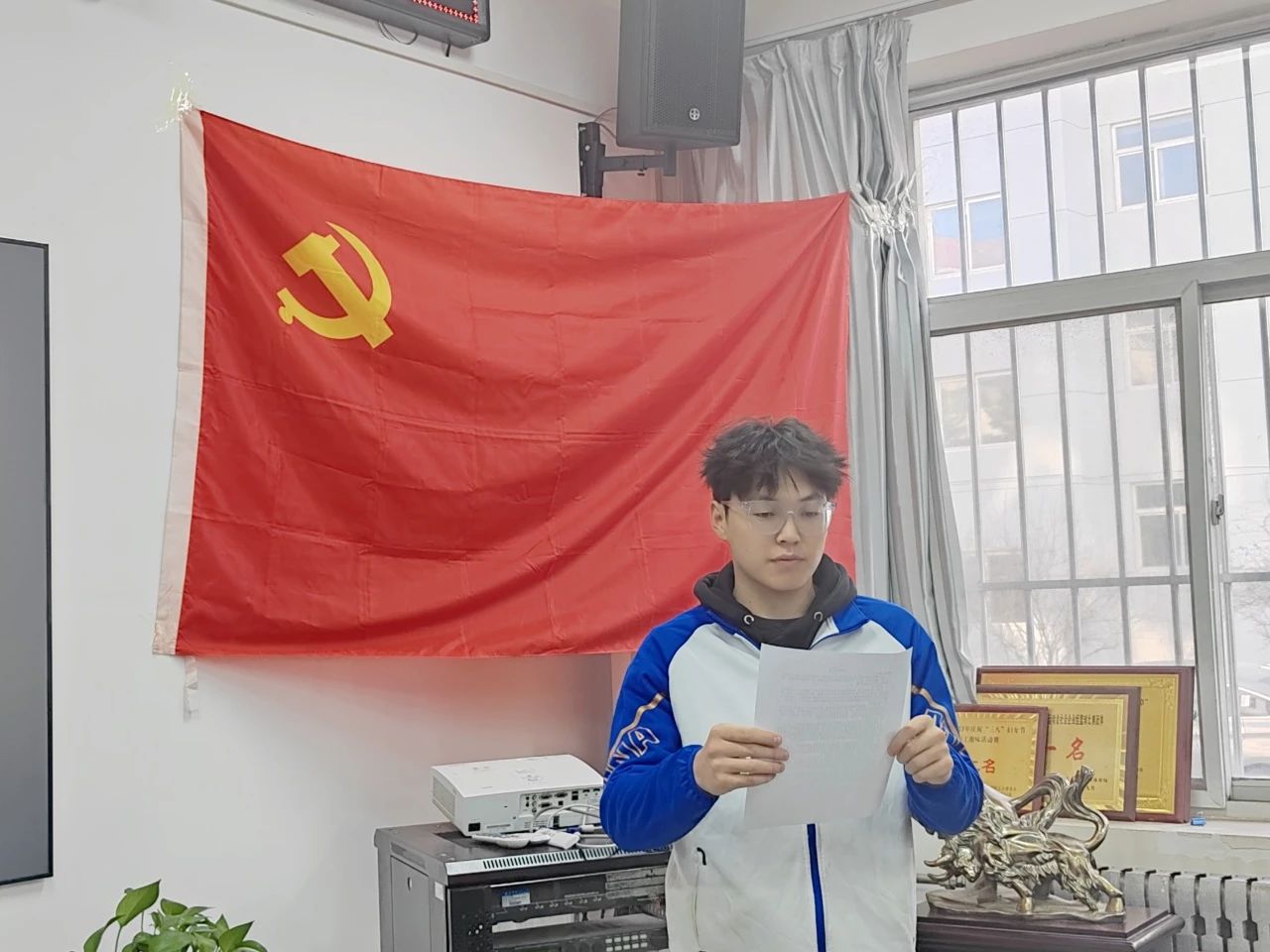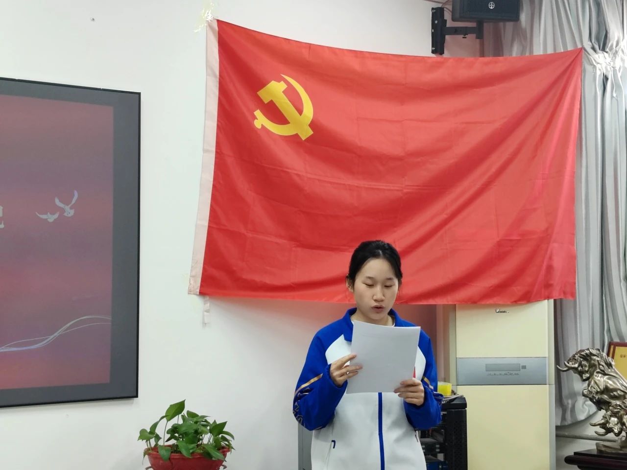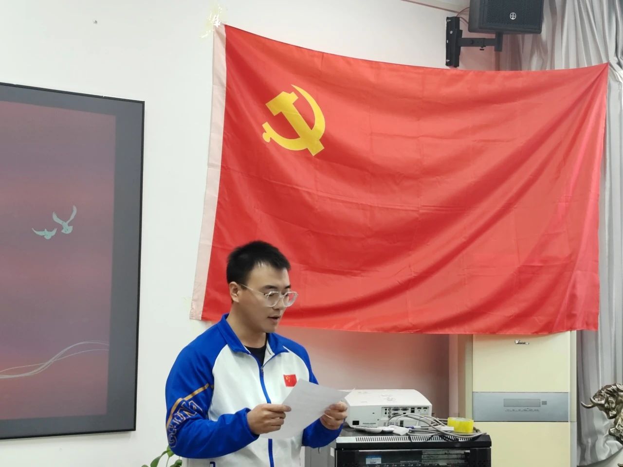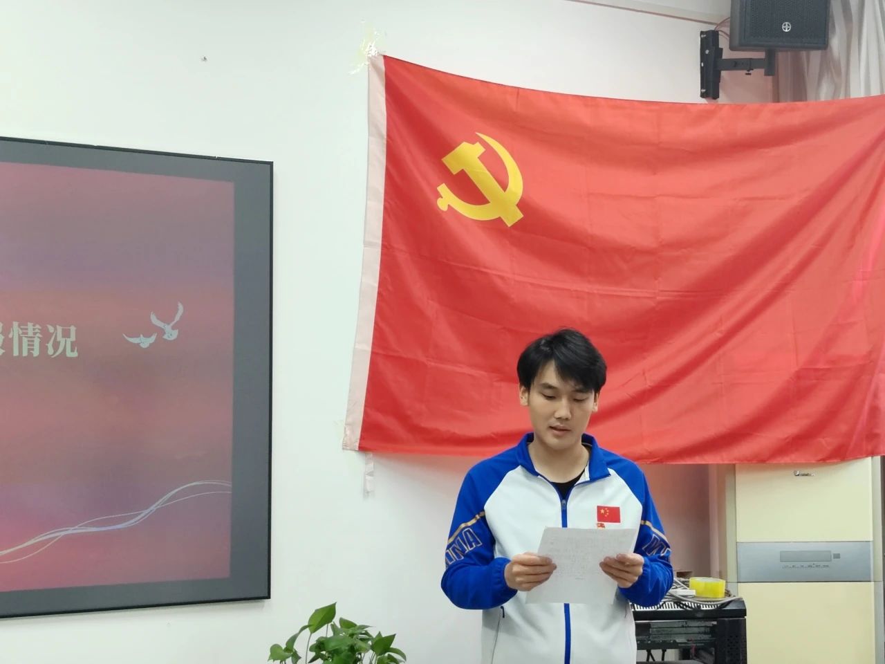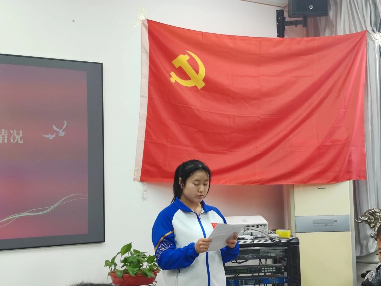 会议开始,全体起立,面向党旗奏唱《中华人民共和国国歌》,在庄严肃穆的歌声中,转正大会拉开帷幕。