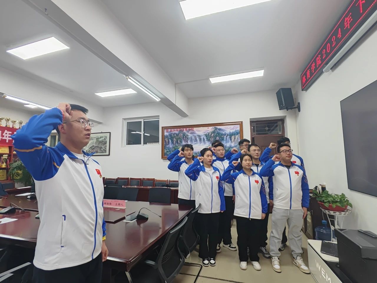 通过正式党员投票一致决定,侯莉娟等十名同志按期转为中共正式党员。武伟同志带领全体党员进行宣誓,重温入党誓词。